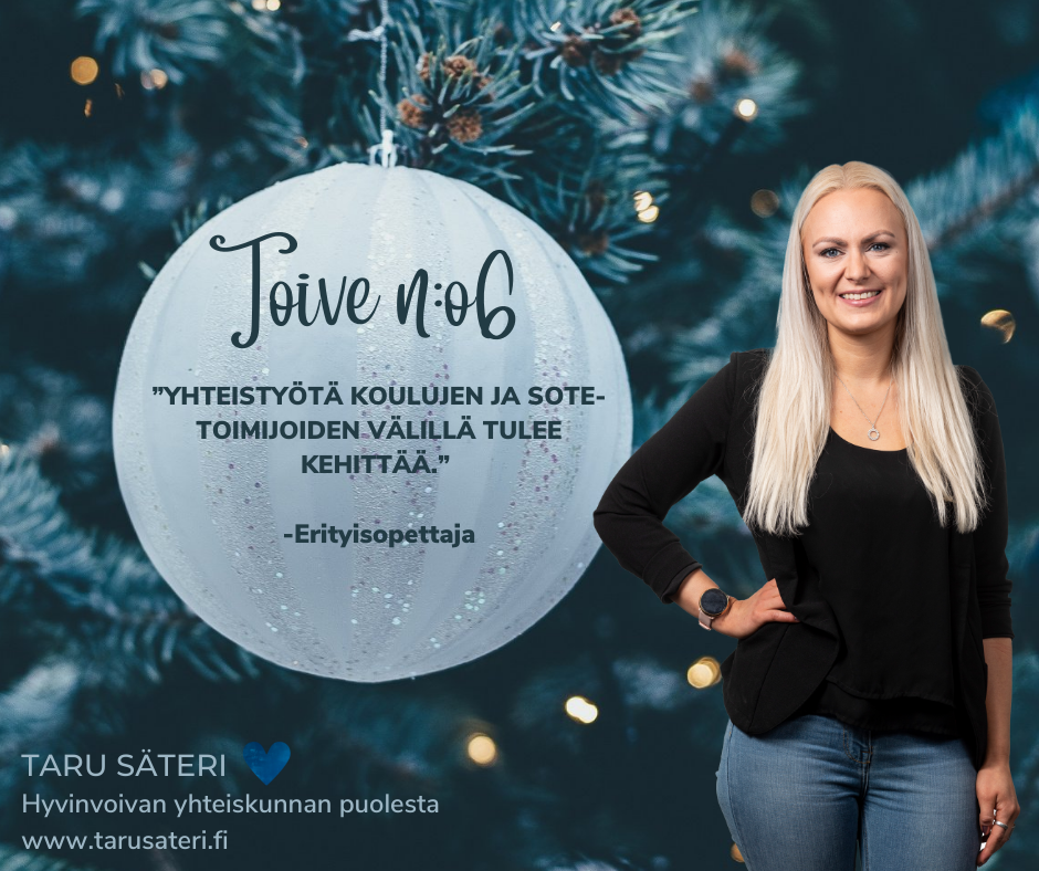 Sosiaalitoimen, terveydenhuollon, viranomaisten ja opettajien yhteistyötä tulee kehittää, jotta pystymme puuttumaan kattavasti epäkohtiin varhaisessa vaiheessa. Hyvinvointialueiden vastuulle siirtyy sosiaali- ja terveyspalveluiden tuottaminen.